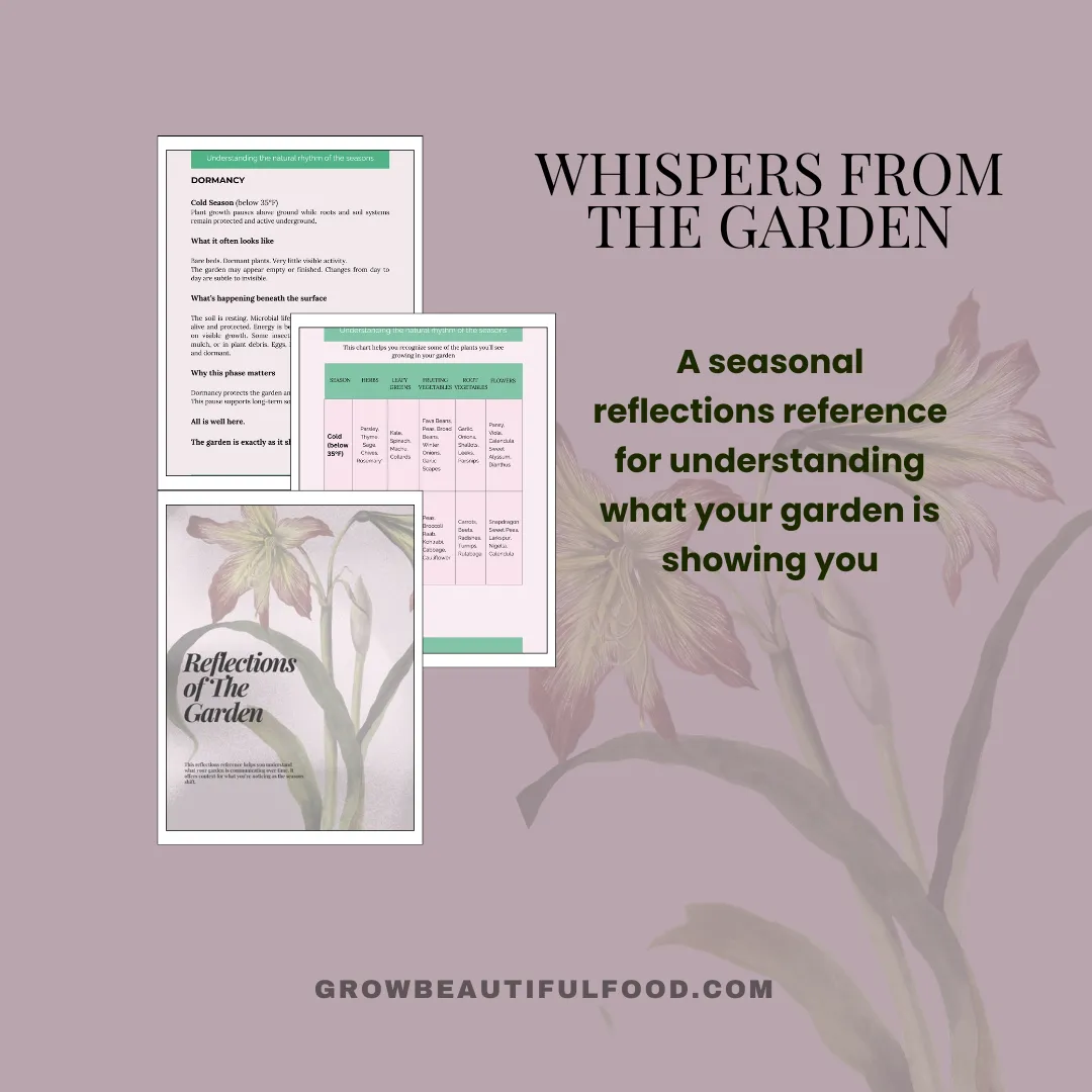 This Reflections Reference helps you understand what your garden is communicating over time. Rather than relying on the calendar and frost dates alone, it focuses on temperature, plant growth, and subtle seasonal signs of the garden, giving context to what you’re noticing as you return to it from season to season.